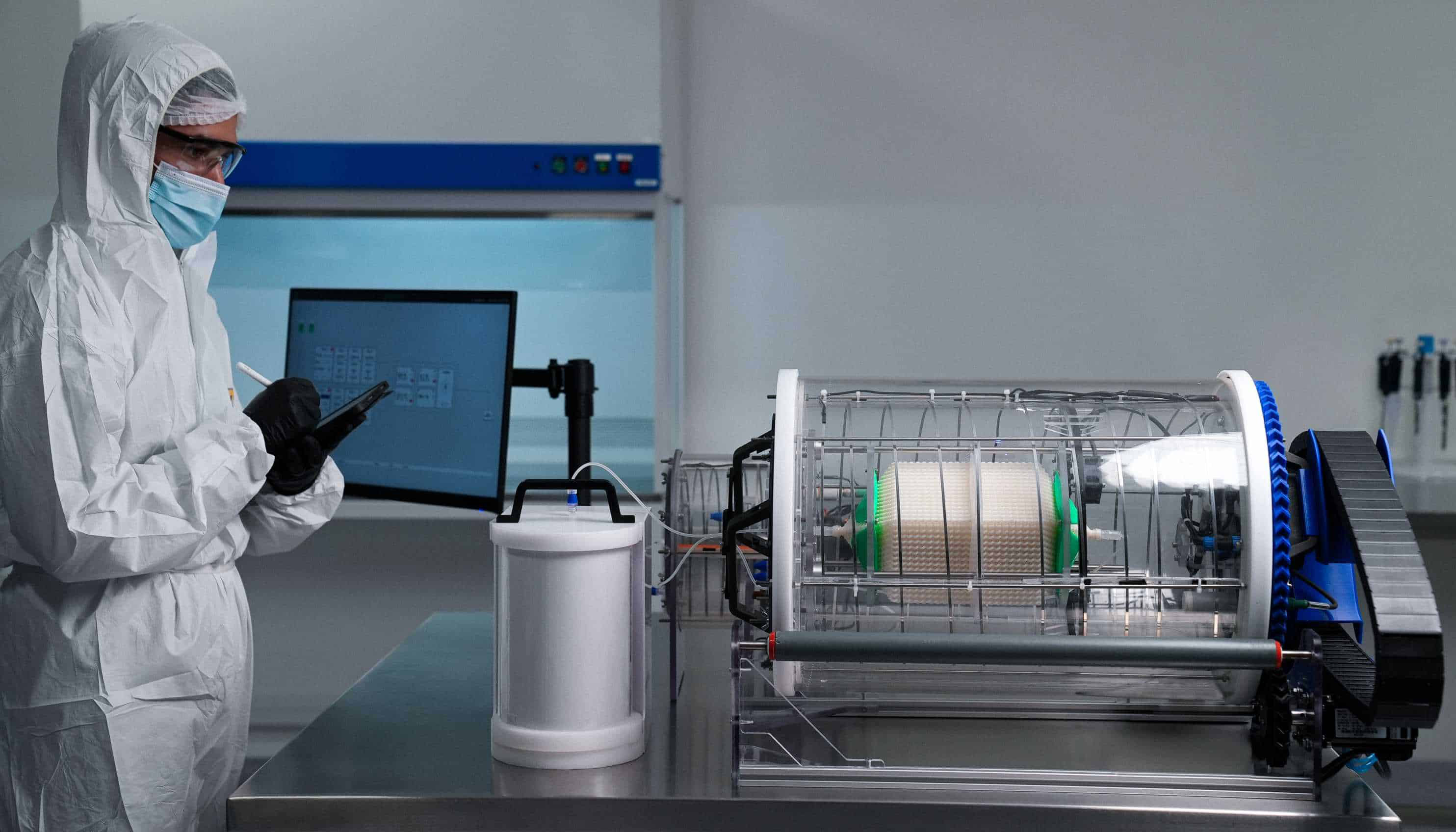 Beyond recycling, the system is also engineered to reduce media volume from the outset. “We operate with 20 times less working volume,” he says. “Cells sense concentrations, not volume – so we can use fewer costly ingredients and still achieve the same results.”